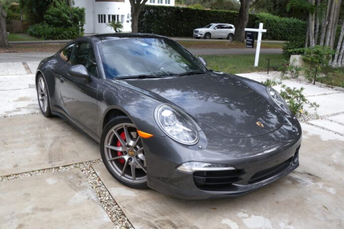 This 2015 Porsche 911 Carrera 4S coupe was initially delivered to Champion Porsche of Pompano Beach, Florida, and it was acquired by the seller in 2017. It is finished in Agate Gray Metallic over black leather, and the car is powered by a 3.8-liter flat-six that drives all four wheels through a seven-speed PDK dual-clutch transaxle. Equipment includes 20″ Carrera S alloy wheels, a limited-slip differential with Porsche Torque Vectoring, a sunroof, bi-xenon headlights, ParkAssist, heated power-adjustable adaptive sport front seats, a Bose sound system, and dual-zone automatic climate control as well as PCM with an Apple CarPlay and Android Auto module. Now with 37k miles, this 991.1 C4S coupe is offered with a window sticker, a Porsche Certificate of Authenticity, the owner’s manual, service records, a car cover, a clean Carfax report, and a clean Florida title in the seller’s name.