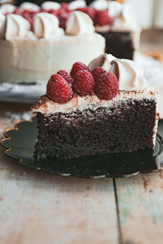 Full recipe here: https://joythebaker.com/2024/12/wedding-cake-inspo-chocolate-stout-cake-with-raspberries-and-cream/