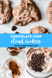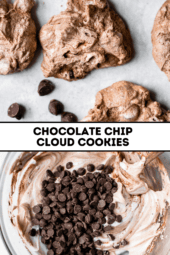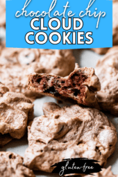 These cloud cookies are light and airy, slightly chewy with chocolate chips in every bite! Made airy with egg whites, sugar and chocolate, these gluten free meringues just melt in your mouth.