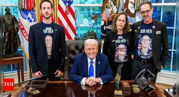 US President Donald Trump on Tuesday met at the White House with released hostage Edan Alexander and his family, as well as the family of slain IDF member Omer Neutra, amid ongoing negotiations in Egypt over his plan to end the war in Gaza.Alexander, who was held by Hamas for 584 days, and Neutra’s family were received in the Oval Office, where the White House reiterated that Trump remains committed to securing the release of all hostages.“Today, on the second anniversary of the October 7 attack, President Trump welcomed Edan Alexander, who was held hostage by Hamas for 584 days, and the family of Omer Neutra to the Oval Office. President Trump is committed to bringing every hostage home,” the White House said through a post on X.Speaking to the press after the meeting, Ronen Neutra, Omer’s father, said they spoke with Trump on behalf of the “28 bereaved families who are among the 40 total hostage families.”“We reminded him how important it is that the deceased are also returned for burial,” Neutra added.Regarding the ongoing negotiations in Egypt and the prospects of a deal to free hostages and end the war in Gaza, Neutra said he believes Trump is “hopeful, but he said we should ‘wait and see what happens in the coming days.’”In recent weeks, Trump and Israeli Prime Minister Benjamin Netanyahu have emphasized efforts to free the 20 living hostages, making no reference to the deceased.Meanwhile, the first day of indirect talks between Israel and Hamas in Egypt ended on a “positive” note, with hopes rising for a deal under Trump’s 20-point plan to end the Gaza war. Talks are set to continue on Tuesday.The Hamas delegation, including leaders Khalil al-Hayya and Zaher Jabarin, two negotiators who survived an Israeli assassination attempt in Doha last month that killed five people, is taking part in talks in Sharm el-Sheikh.The discussions are mediated by Egypt and Qatar, with senior officials from the US, Qatar, and Turkey also participating. The American delegation includes US envoy Steve Witkoff and Trump’s son-in-law Jared Kushner, according to White House officials.On the first day, the talks focused on a proposed prisoner and captive exchange, a ceasefire, and the delivery of humanitarian aid to Gaza, as cited by Al Jazeera. White House press secretary Karoline Leavitt said Trump is advocating for an early exchange of Israeli captives and Palestinian prisoners to generate “momentum” for implementing other elements of his plan to end the Gaza war. “The technical teams are discussing that as we speak, to ensure that the environment is perfect to release those hostages,” and that teams were “going over the list of both the Israeli hostages and also the political prisoners who will be released,” Leavitt was quoted as saying by Al Jazeera.