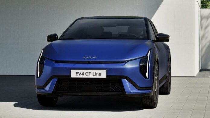 The EV4 GT-Line variant introduces sportier design elements, including wing-shaped front and rear bumpers and triangular-patterned 19-inch wheels, reinforcing a more dynamic and futuristic character.