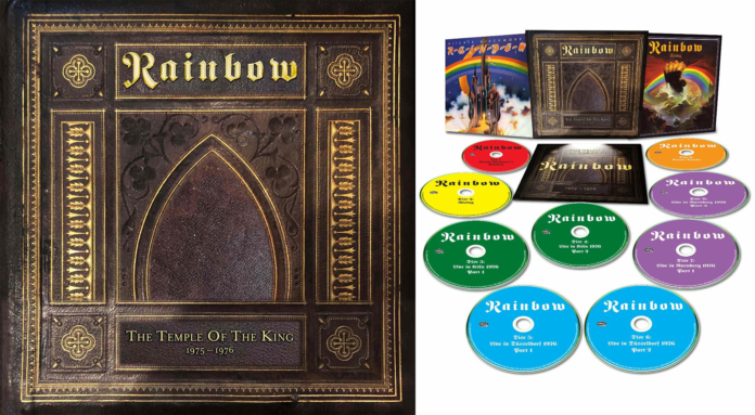 The Temple Of The King (1975-1976) is the most comprehensive collection of the opening phase of Rainbow‘s career to date, and is the first in a series of anthology sets covering the career of legendary guitarist Ritchie Blackmore. The 9-CD set, newly mastered by Andy Pearce and Matt Wortham, is housed in deluxe 7″ packaging featuring a 24-page booklet featuring memorabilia, photos and sleeve notes by music writer Rich Davenport.